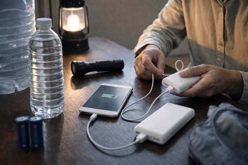 - スマホはこまめに充電し、モバイルバッテリーも満タンに