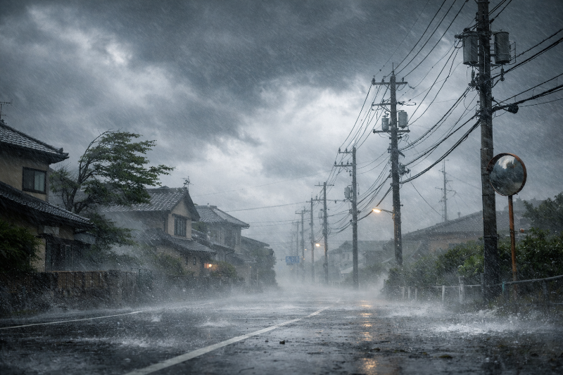 | 風で停電が起きることも | 電線・木の枝の影響 | スマホ充電+ライト確保 |