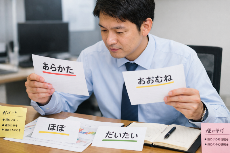 まずは、いちばん使う機会の多い「あらかた」と「大体」の違いから意識すると、日常でも仕事でも使いやすくなります。