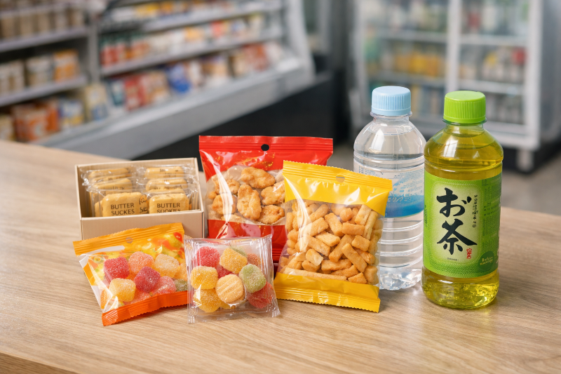 具体的には、個包装のクッキーやビスケット、常温OKのゼリーなどが扱いやすいです。