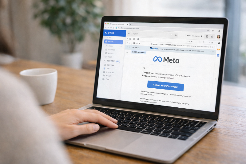 インスタのパスワード変更メールが「from Metaのロゴ画像だけ」に見えるときは、メールの内容が消えたのではなく、表示のしかたが合っていないだけのことが多いです。