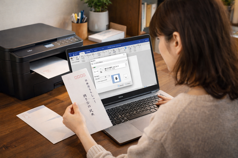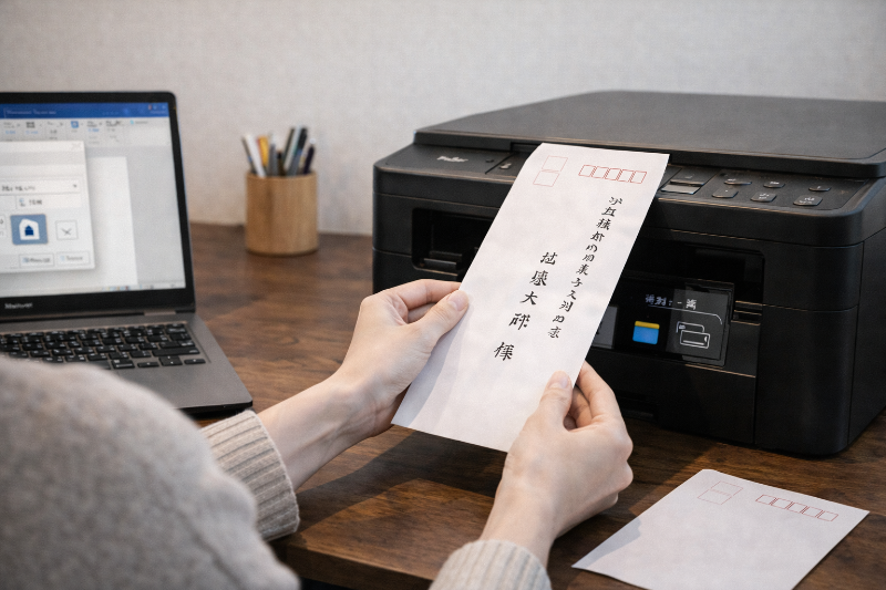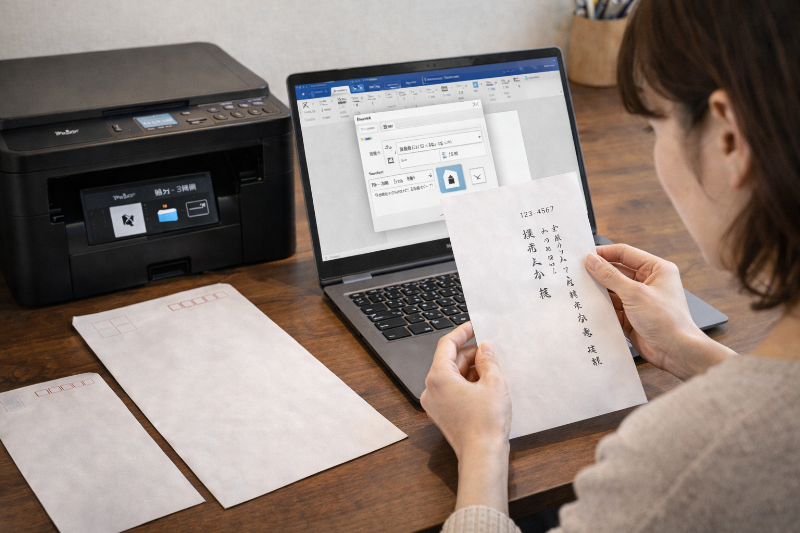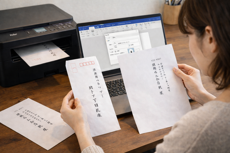 どうしても封筒に直接印刷が合わないときは、宛名ラベルや別紙で対応するのも、十分きれいにできます。