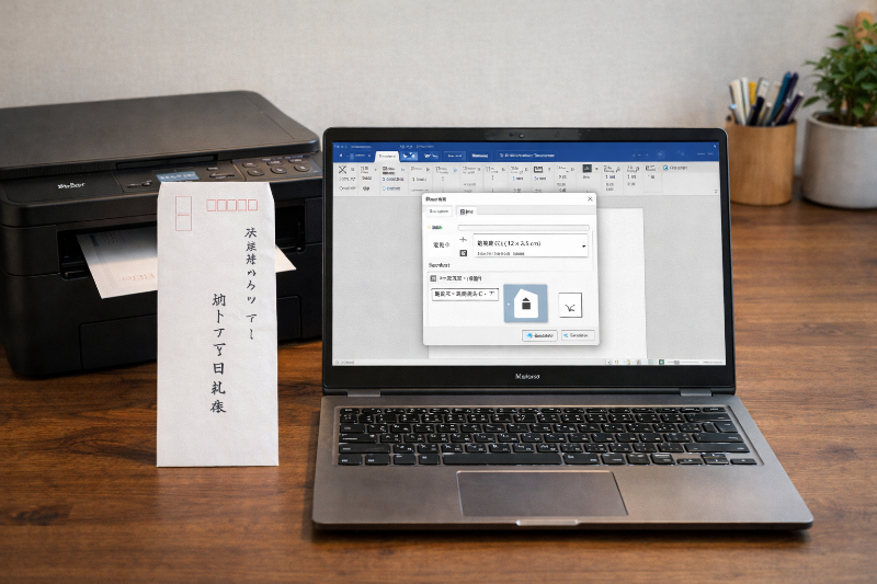 結局いちばん大切なのは、Word側とプリンター側で「封筒サイズ」と「給紙方向」を一致させて、最初に1枚だけテストすることです。
