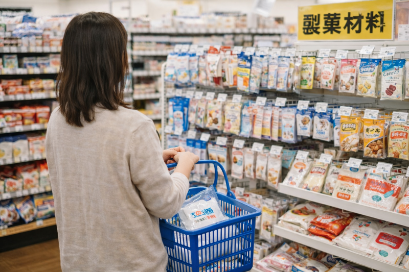 まずは製菓材料コーナーを起点に、見つからなければ砂糖の棚、粉ものの棚へと切り替えてみてください。