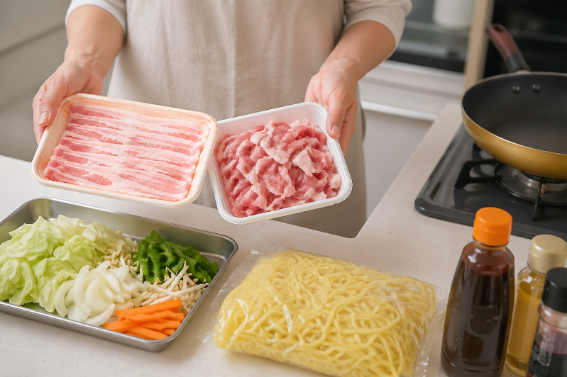 迷ったら「豚バラ」か「豚こま・切り落とし」を選べば、焼きそばはおいしくまとまりやすいです。