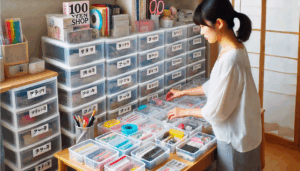 100均の収納グッズはサイズも種類も豊富なので、小物の整理にぴったりです。