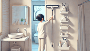 掃除を続けるコツは、“手軽にできる環境を整える”ことです。道具を取りやすい場所に置いておくことで、面倒に感じる前にサッと掃除ができます。たとえば、壁にマグネット式のフックを設置して、水切りワイパーやブラシを吊るしておくと便利です。