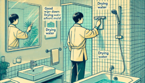 さらに、シャワーのホースやカーテンの下部にも水がたまりやすいので、使用後は軽く持ち上げて水を切ると良いです。小さな工夫の積み重ねが、カビを防ぐ大きな効果につながります。