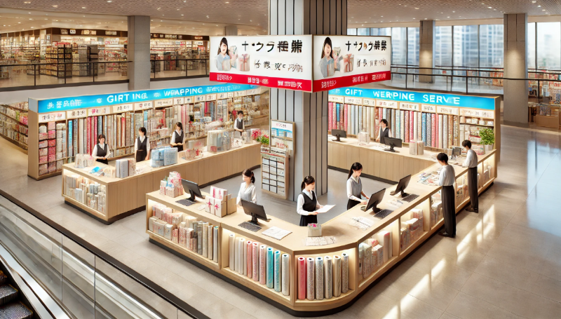 サービスカウンターでは、案内や問い合わせ対応が中心となり、その場でラッピング作業を行うことは多くありません。配送サービスを利用すれば、包装した状態で発送できる場合もありますが、即日仕上げとは限らない点に注意が必要です。