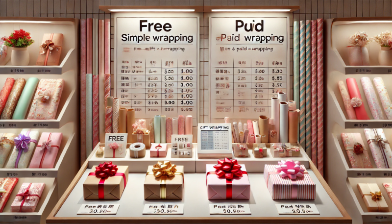 有料オプションでは、包装紙の種類を選べたり、リボンや装飾を追加できたりと、仕上がりの自由度が高くなります。贈答用としてきちんとした印象を与えたい場合に向いています。