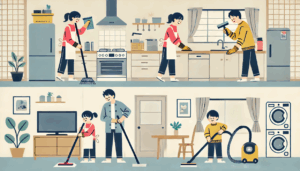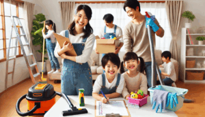 - 家族と分担する:1人でやるより、家族で役割を決めて行うと効率が倍増します。子どもにはおもちゃ整理や拭き掃除など簡単な担当を任せましょう。