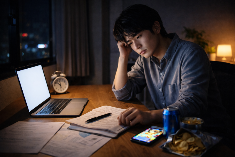 自分の意思というよりも、状況に追い込まれて選択する行動である点が、徹夜の大きな特徴といえます。