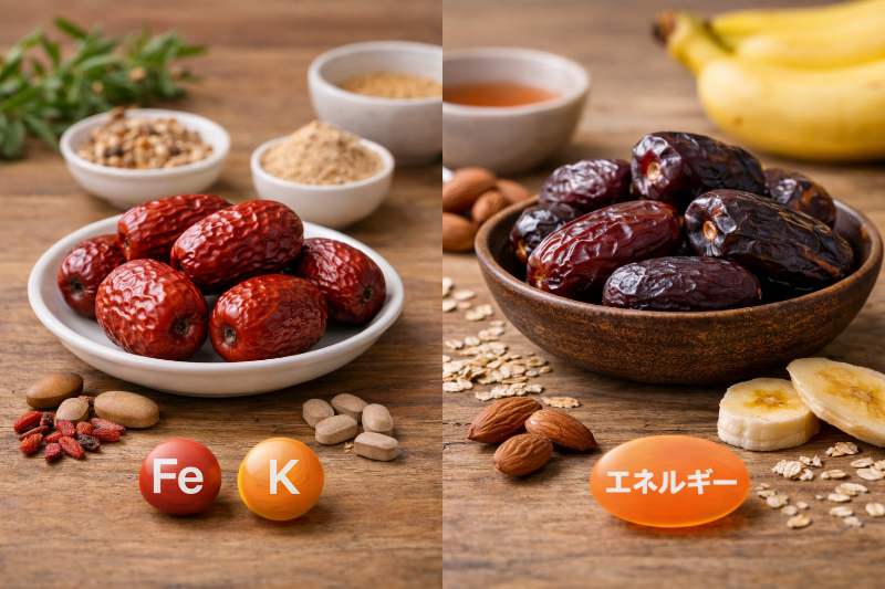 最初に押さえておきたいポイントは、棗とデーツは代替関係ではないという点です。
