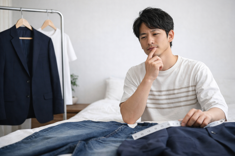 体に直接メジャーを当てるのが難しい場合は、普段着ている服を採寸する方法もおすすめです。
