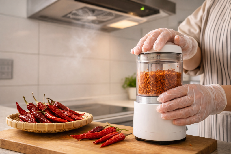 乾燥させた赤唐辛子は、粉末にするとさらに使いやすくなります。