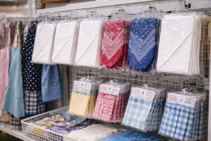 無印良品ではシンプルなバンダナが販売されていることもあるため、用途によっては代用できます。