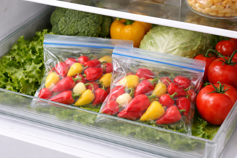 軽く水気を拭き取り、ポリ袋や保存袋に入れて冷蔵庫の野菜室に入れます。